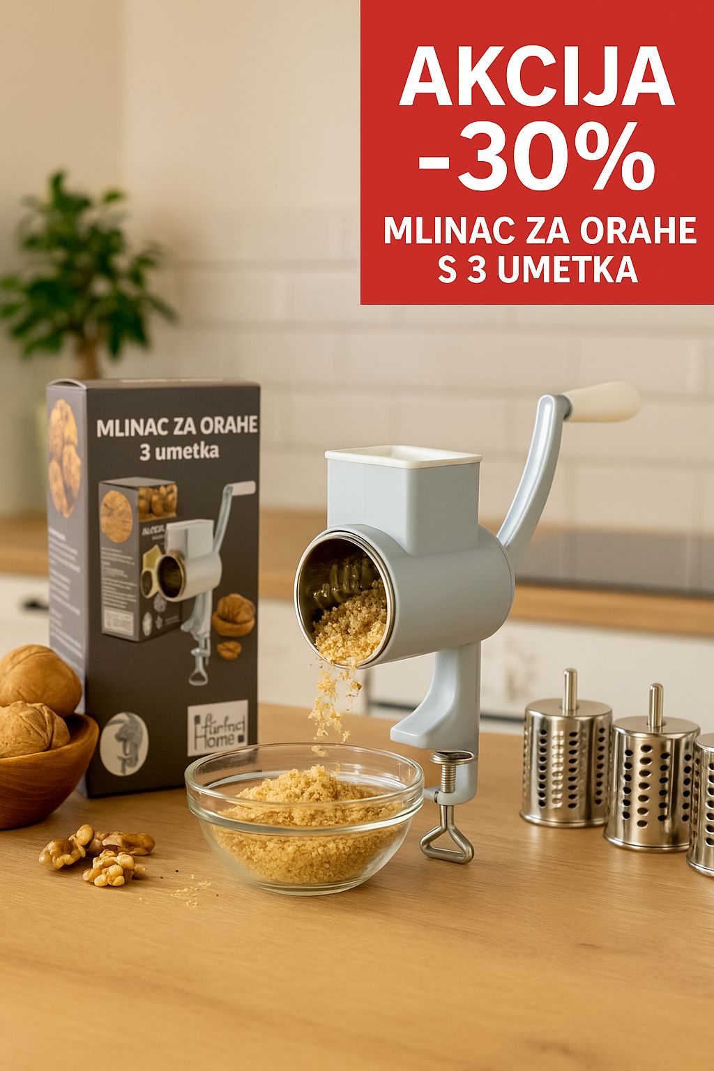 Izvrsno za mljevenje oraha, sira i pravljenje krušnih mrvica! Može se pričvrstiti na stol, površina je zaštićena od oštećenja gumenim premazom.